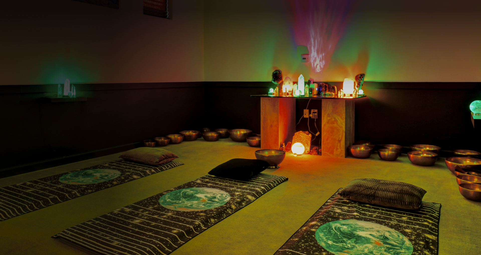 Relax to the soft ancient tones of Tibetan singing bowls from within a crystal grid – which radiates your energy.